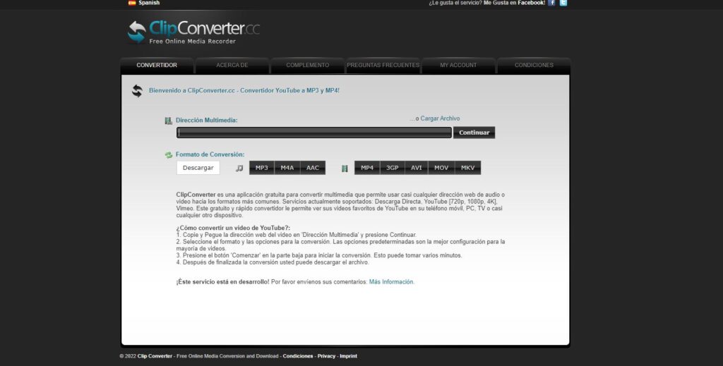 Con esta herramienta podrás descargar tanto audios como videos de Youtube. Se trata de un sitio seguro, pero sí que te aparecerán varios anuncios o se cargaran sitios webs aleatorios que pueden darte mala espina o ser sospechosas. Cierra siempre estas pestañas y vuelve a la principal para continuar con tu descarga.
