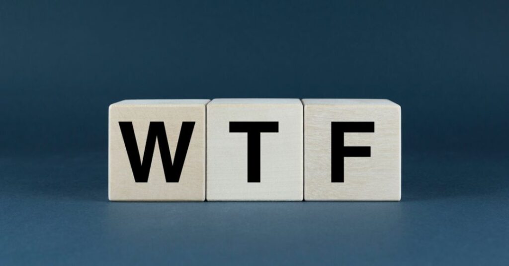 Expresión utilizada para mostrar incredulidad. Son las siglas de “what the fuck”, que traduciremos como “¿qué demonios?”.